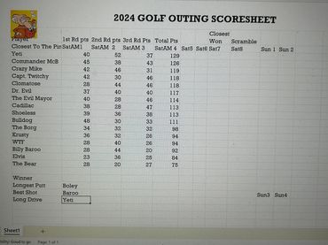 This year, the "B flight" will be an option that players can choose. The B flight will play 3 rounds, one each day. The B flight will play be scheduled for three founds of golf instead of four. Friday we will still mix all of the golfers together and keep wolf score. Saturday morning, the wolf tournament goes on but the B flight players do not play. Saturday afternoon, we will have the traditional 4 man scramble, separate from the wolf tournament with everybody playing. Sunday the Wolf tournament concludes with the third round, and everyone playing wolf. The B flight players will play in a separate group or groups from those playing the full tournament, with B flight picking up their wolf scores from Friday for a chance to be the B flight winner. Those playing the full tournament will pick up their 2 round score for a chance to be golf outing champion. Hopefully, we will be able to set up even foursomes.